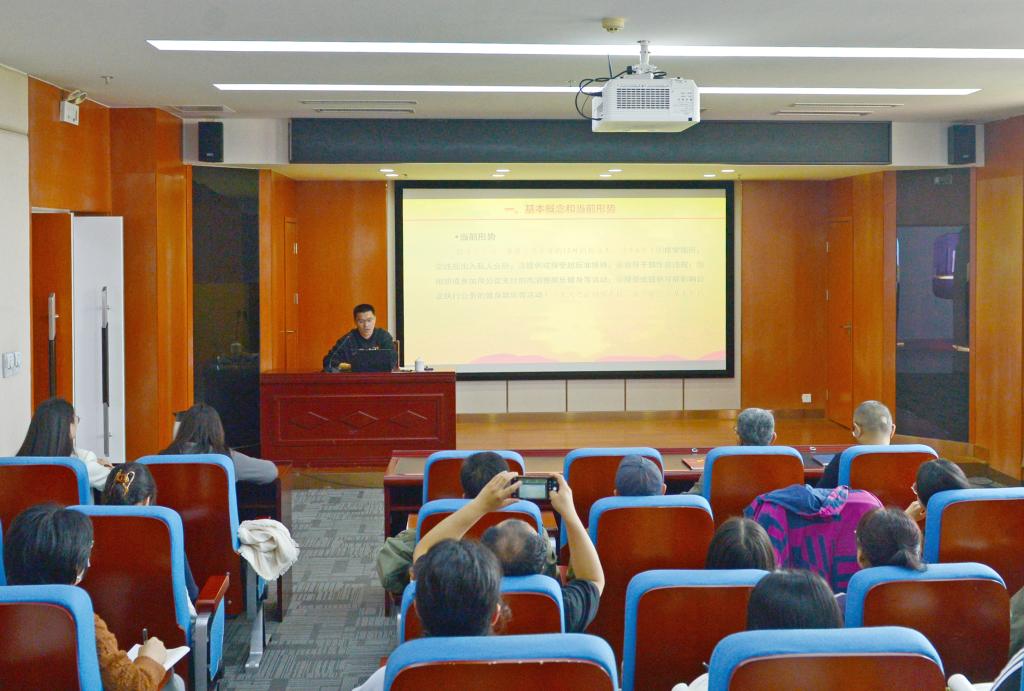朱新峰以“以铁的纪律抓好中央八项规定精神落实”为题,围绕“基本概念和当前形势”“享乐主义、奢靡之风的表现形式和纠治重点”“其他几个方面问题”三个方面进行讲解,深入解析了中央八项规定和中央八项规定精神的具体区别、违反中央八项规定精神的具体表现形式,引用丰富的案例素材,深入解读了中央八项规定及其实施细则精神的深刻内涵、要求。
