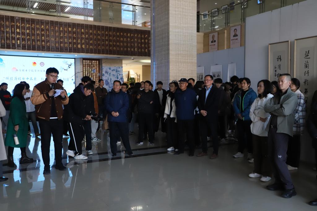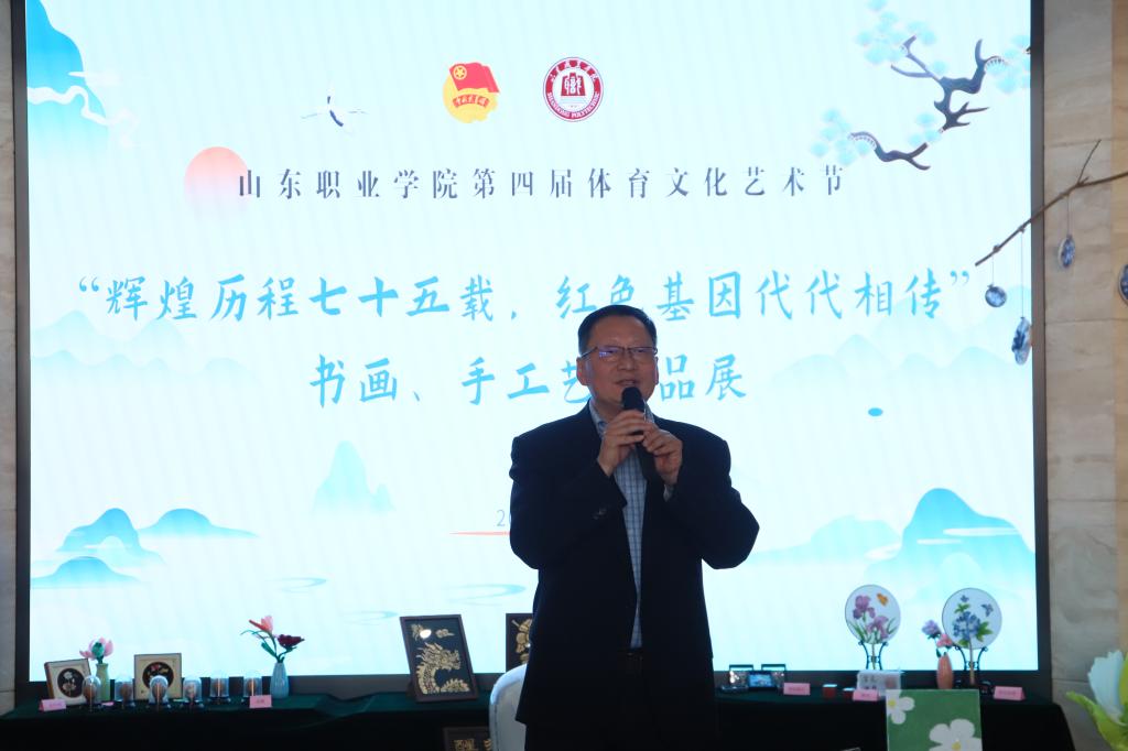 11月21日,“辉煌历程七十五载,红色基因代代相传——Beplay体育官方网站第四届体育文化艺术节书画手工艺作品展”开幕式在图书行政楼一楼举行。院长郭培谦出席开幕式。离退休老领导祝介安、高全之,教职工代表以及“暖暖的家”活动家庭参加开幕式。