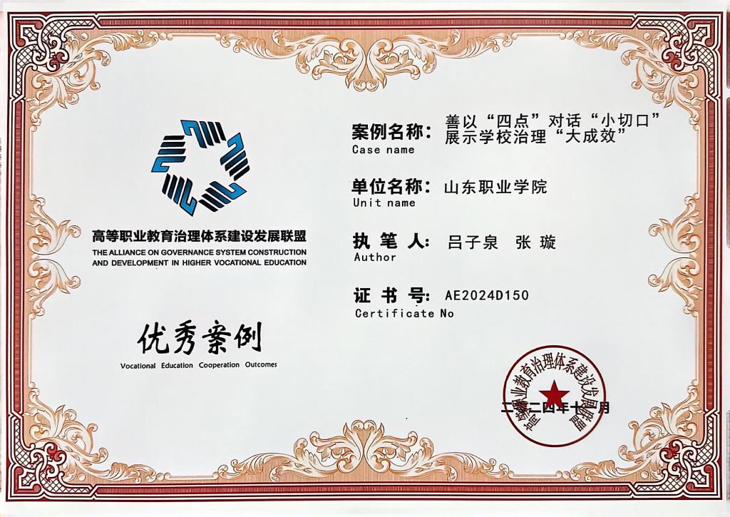 会上,对2024年全国高等职业院校治理现代化典型案例进行了表彰。我校获评全国高等职业教育治理现代化典型院校,推送的《善以“四点”对话“小切口”展示学校治理“大成效”》案例入选联盟优秀案例,这是我校继2022年入选全国高等职业院校治理体系建设优秀案例后的又一新成绩,也是学校提升治理现代化能力的一项标志性成果。