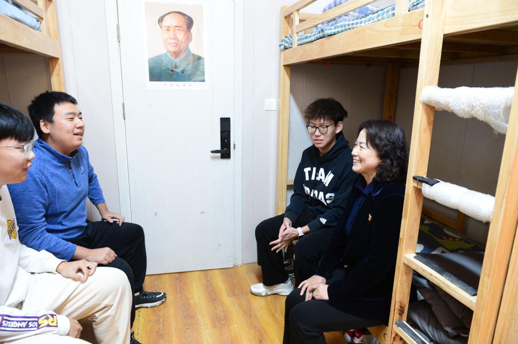赵凤文先后考察了易安书院的党建书屋、廉政书屋,并走进学生宿舍,与学生进行深入交谈,了解学生学习生活情况,倾听学生心声。