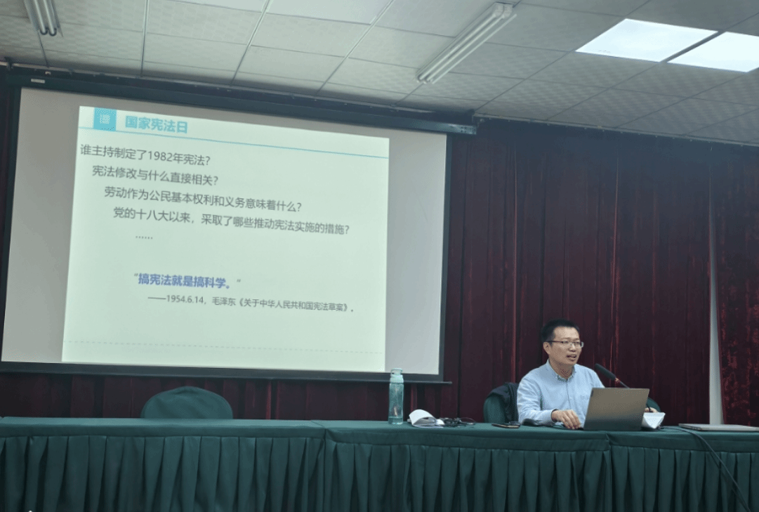 为进一步提升宪法宣传教育成效,扩大宪法宣传的覆盖面与影响力。12月5日下午,王楠为该校师生带来了一场题为《走近现行宪法》的理论宣讲。他从我国现行宪法的产生背景和发展历程入手,深入浅出地讲解了现行宪法的主要内容和中国特色,号召广大师生自觉尊崇宪法、学习宪法、遵守宪法、维护宪法,共同为推进全面依法治国贡献自己的力量。