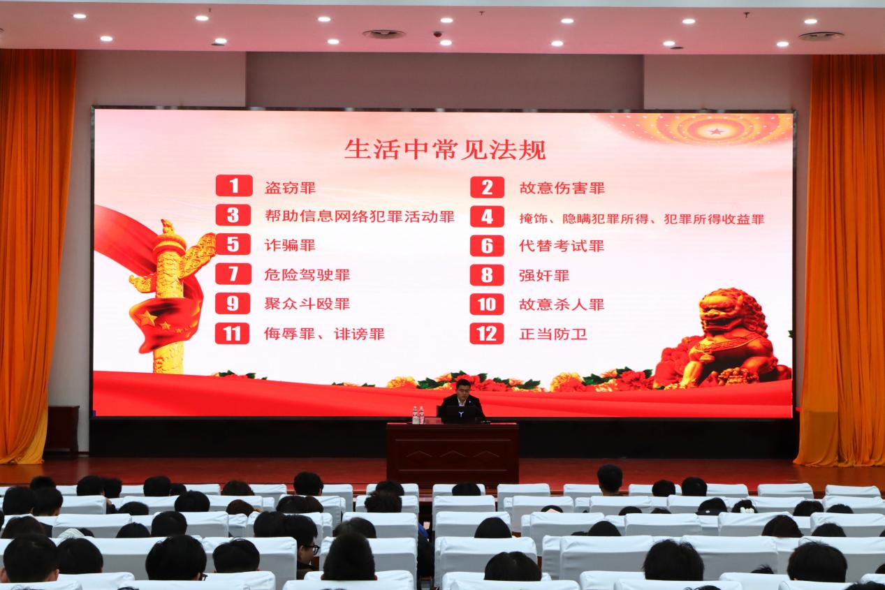 宣讲会现场,侯坤以十二个生活常见法规为主题,运用通俗易懂的语言、图文并茂的课件,深入浅出地向同学们普及了盗窃罪、故意伤害罪、侮辱诽谤罪、诈骗罪等相关法律知识。