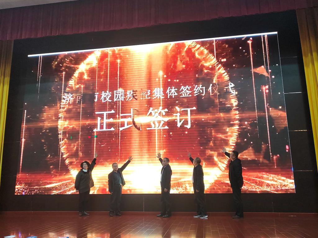 签约仪式前,各参与方围绕如何有效整合资源,制定适合学校实际情况的疾控策略等方面进行深入研讨,就合作具体内容达成一致意见。在签约仪式上签订了《校园疾控建设合作协议书》。根据该协议,济南市疾病预防控制中心、高新区疾病预防控制中心将与我校共同开展“校园疾控”建设工作,加强人员培训和交流、推动信息资源共建共享。