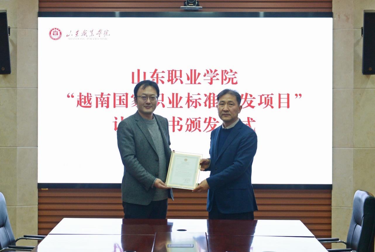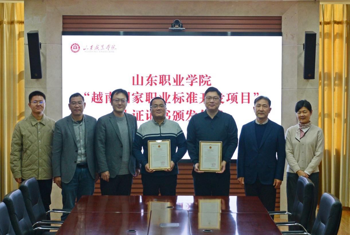 12月17日上午,我校举行越南国家职业标准开发认证证书颁发仪式。武汉叁壹教育科技有限公司副总经理程韬、周正伟,我校副院长王绍军、乌拉尔国际轨道交通学院院长唐勇、铁道机车车辆学院院长庞继伟、国际交流学院院长张欣等出席仪式。