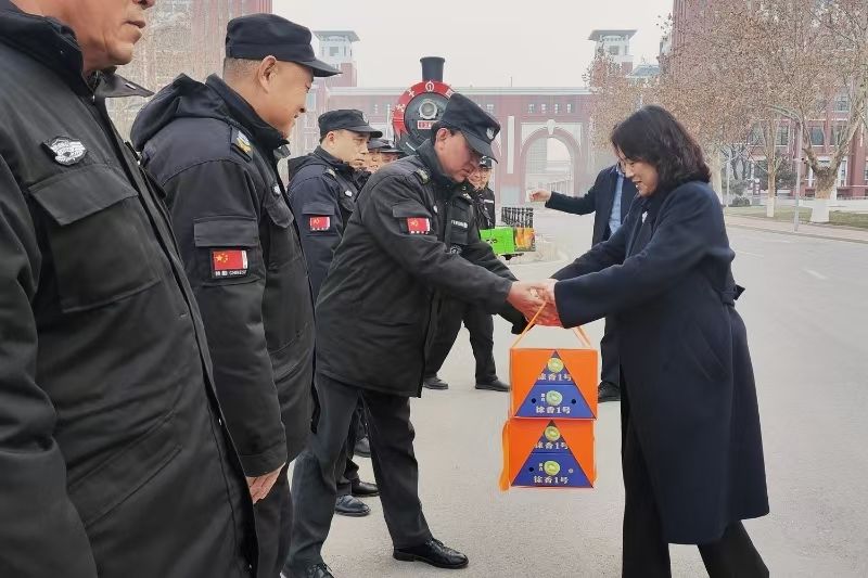 1月23日下午,学校党委书记赵凤文、院长郭培谦看望慰问寒假期间在校值班值守的安保及后勤保障人员,向他们送上慰问品并致以新春的祝福和问候。