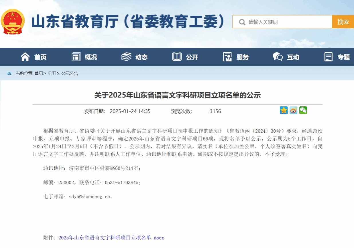 近日,山东省教育厅网站公布了2025年山东省语言文字科研项目立项名单,我校《面向新疆南疆少数民族地区“普通话推广+”赋能职业教育发展研究与实践》和《基于国际产能合作需求的“中文+职业技能”海外本土化人才培养模式研究与实践》两个项目悉数入选。这是我校首次获得山东省语言文字科研项目立项。