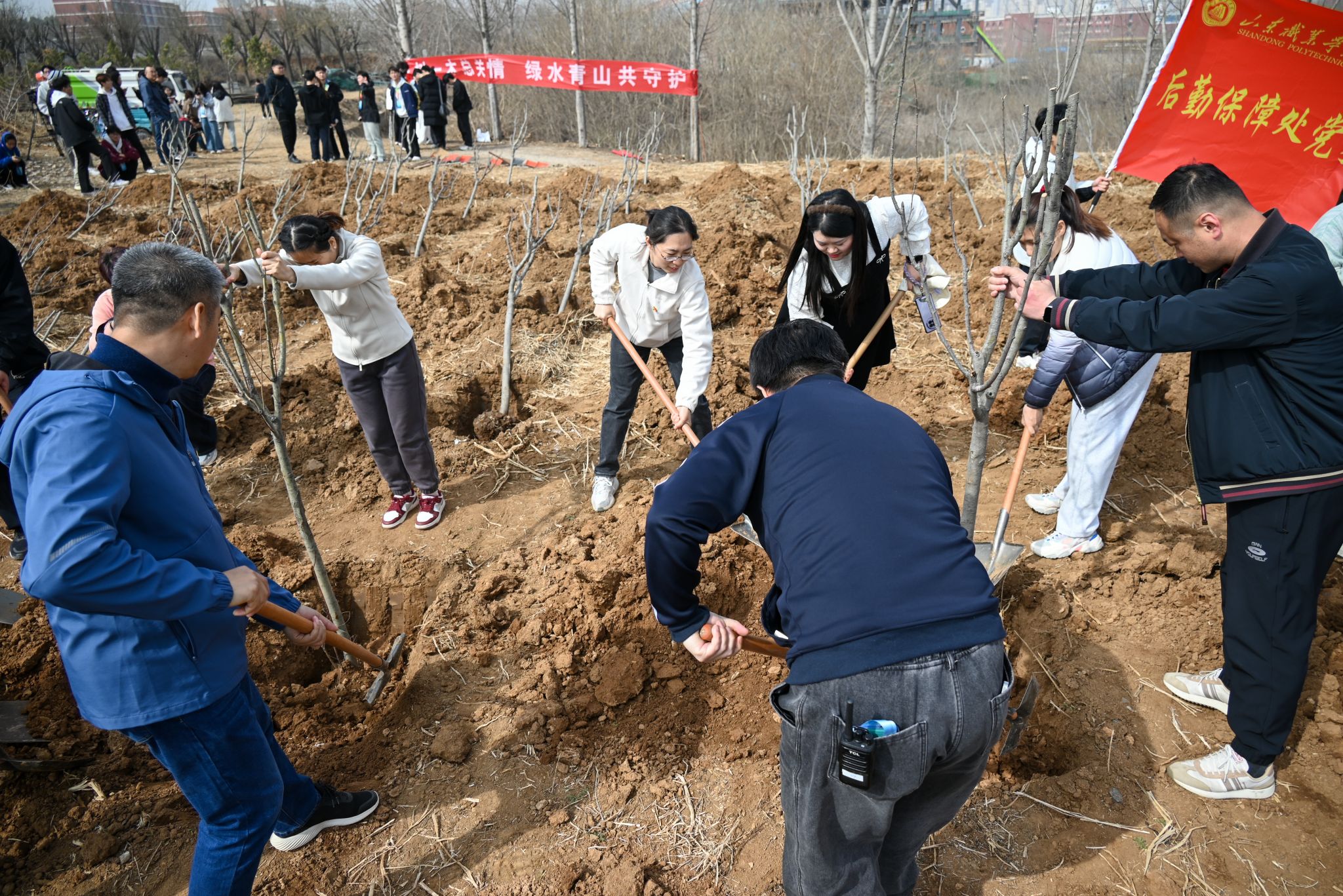 春回大地万物苏,植树添绿正当时。在第47个植树节到来之际,我校后勤保障处党支部与济南高新区市场监管部巨野河市场监管所党支部携手开展“一树一木总关情 绿水青山共守护”校地共建义务植树活动。