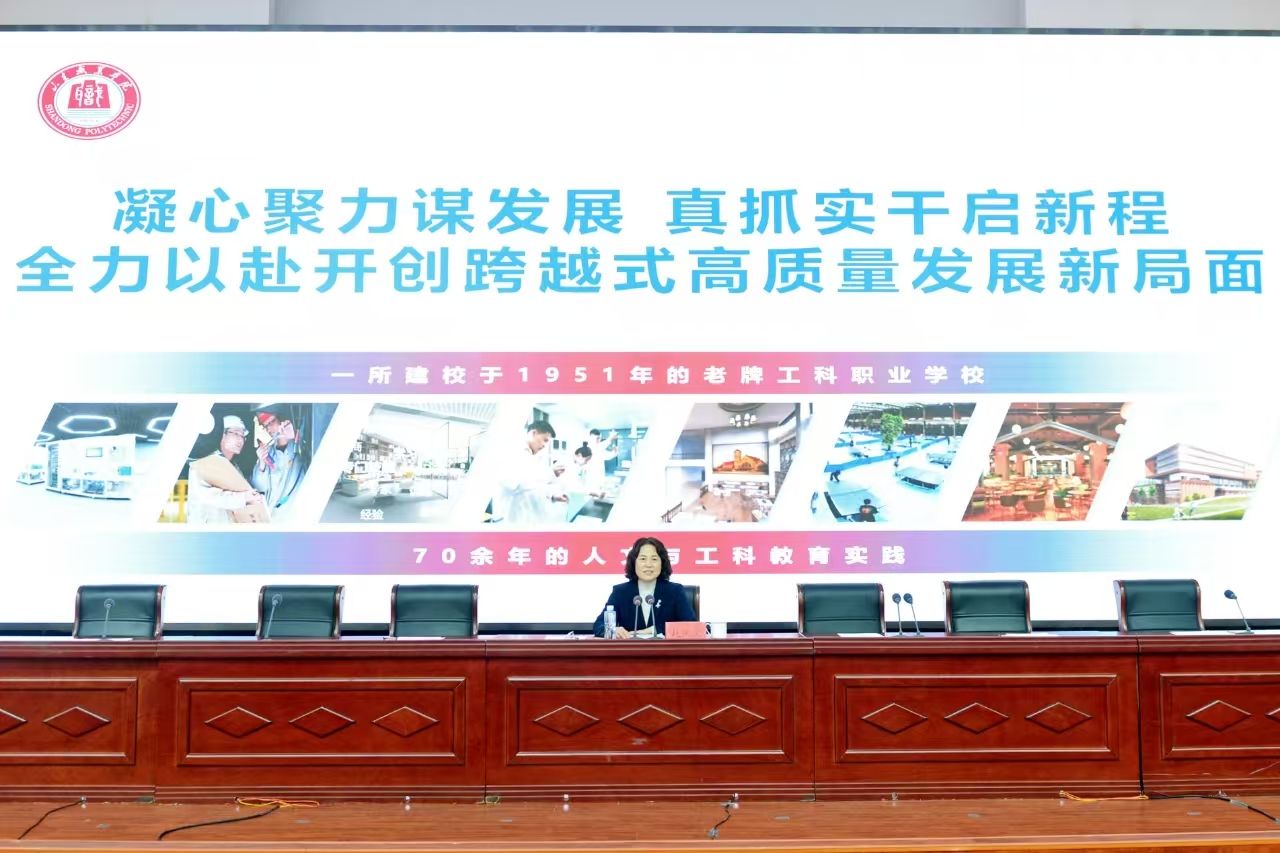 赵凤文号召全体党员干部和师生员工坚定信心、鼓足干劲,当好推动学校高质量发展、跨越式发展的执行者、行动派、实干家,加快建设特色鲜明、走在前列的新时代高水平职业院校,努力为教育强国、教育强省建设作出新的更大贡献。