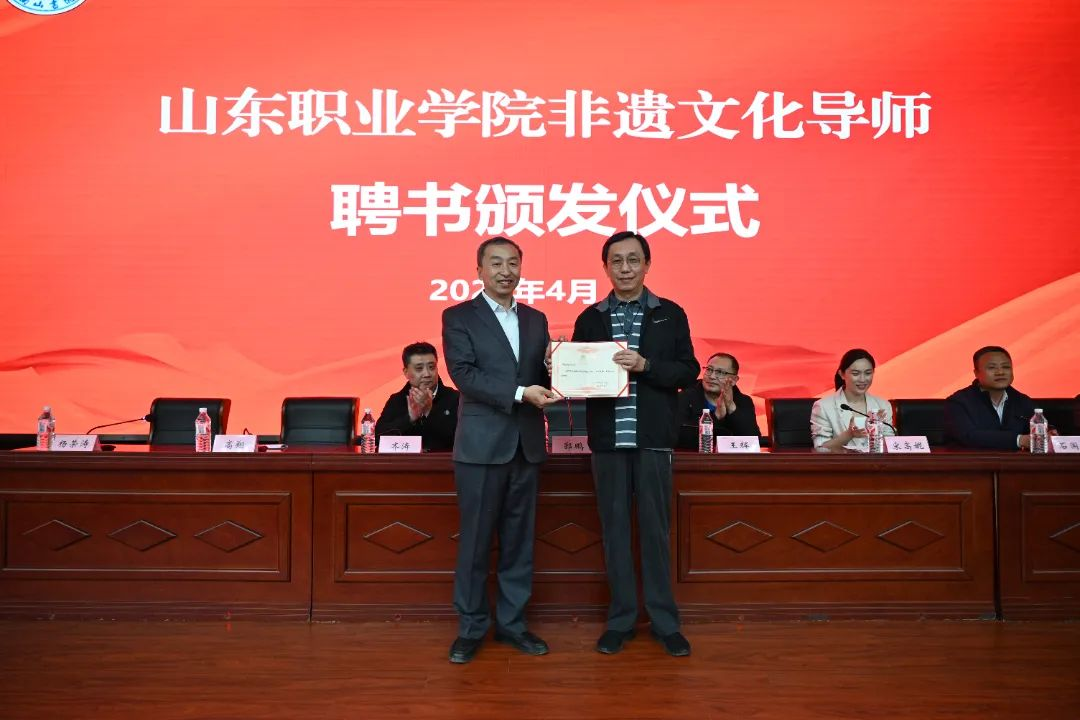 仪式上,郭鹏为高翔颁发“非遗文化讲师”聘书,科技与社会服务中心主任齐涛为石国华、刘向平颁发“文化讲师聘书”。