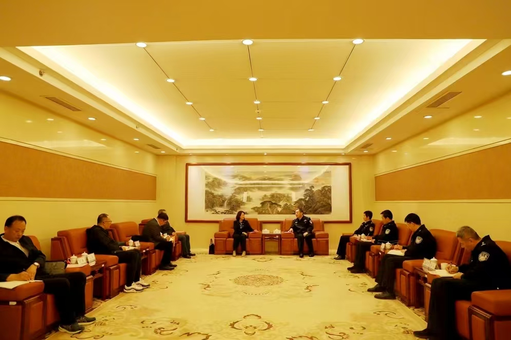 赵凤文表示,安全工作是学校一切工作的前提和底线。学校党委高度重视安全工作,坚持拧紧责任链条,逐级压实安全责任,抓严抓实校园安全各项工作,确保师生安全和校园稳定。得益于济南市公安局一直以来对学校安全工作的大力支持和指导帮助,学校连续多年获安全工作先进集体。希望济南市公安局一如既往地关心支持学校发展,持续深化警校合作,指导学校进一步提升安全工作质量水平,以高水平安全护航高质量发展。