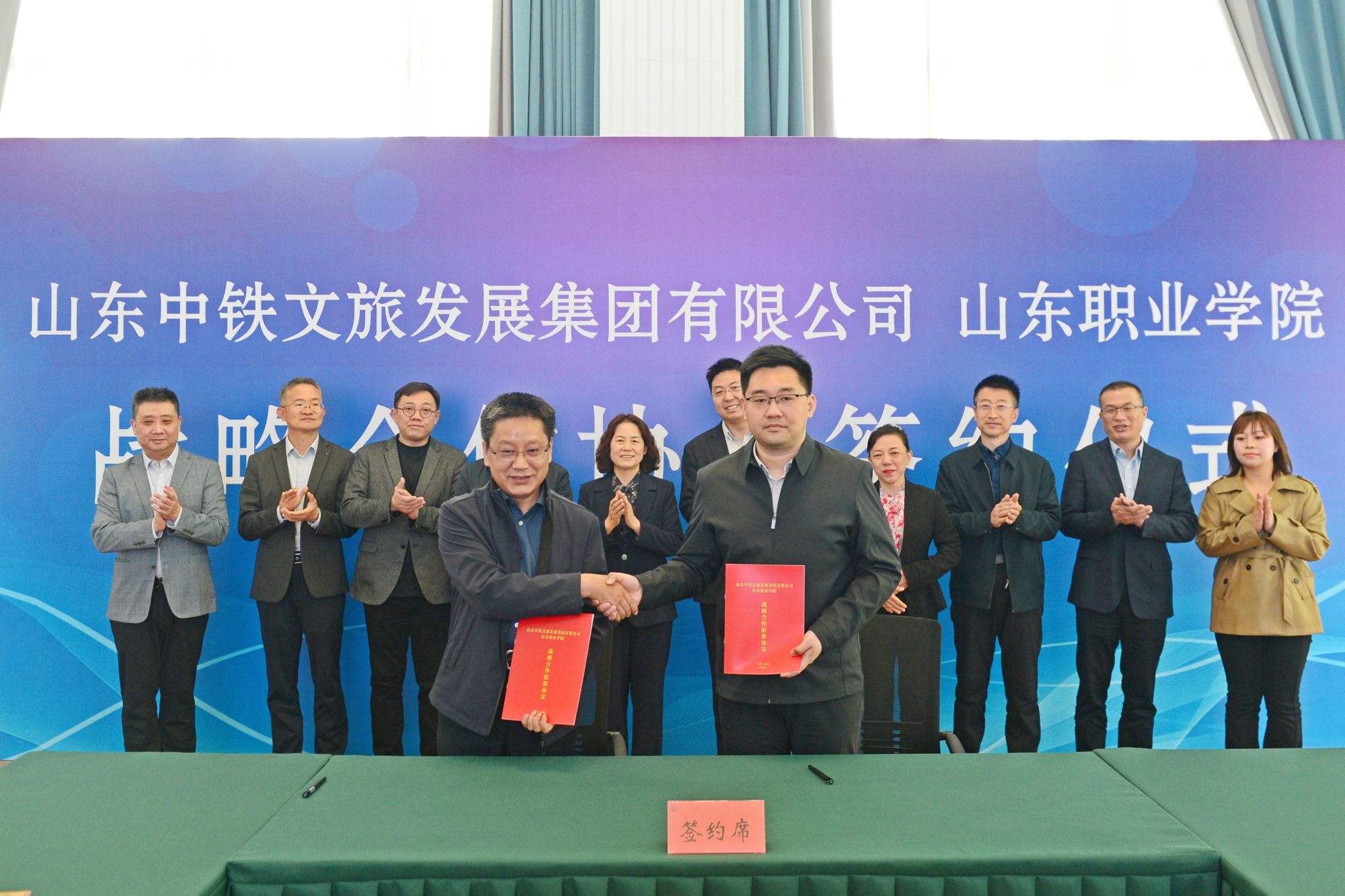 为深化产教融合、校企合作,构建教育链、产业链、创新链、人才链协同发展新格局,4月24日,我校与山东中铁文旅发展集团有限公司签署校企战略合作协议。山东中铁文旅发展集团有限公司党委书记、董事长王永强,党委副书记、工会主席徐玫、副总经理张博,我校党委书记赵凤文,党委委员、副院长李新华,党委委员、副院长张少飞等出席签约仪式。