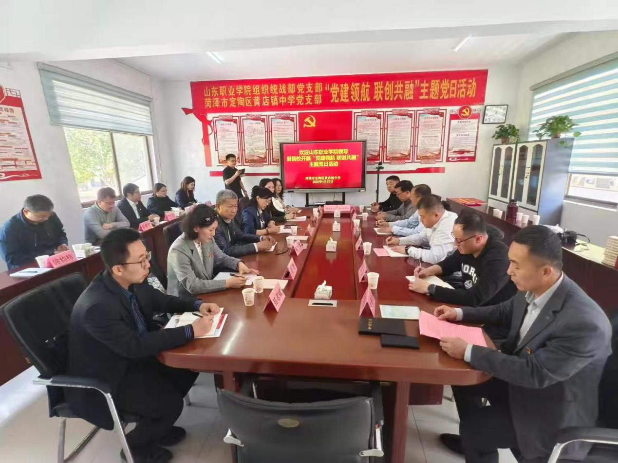 为认真落实山东省教育厅对口帮扶定陶工作部署,强化党建引领作用,4月23日,我校组织统战部党支部联合资产管理处党支部、学团党支部赴菏泽市定陶区黄店镇中学开展“党建领航,联创共融”主题党日活动。定陶区教育工委常务副书记、党组书记、局长朱庆民,黄店镇党委书记陈尔旺,黄店镇学区主任、中学校长付永生、黄店镇中学党支部书记许素轩,省教育厅驻黄店镇第一书记工作组有关人员,我校组织统战部部长刘红、资产管理处处长罗娟、学生工作处有关人员参加活动。