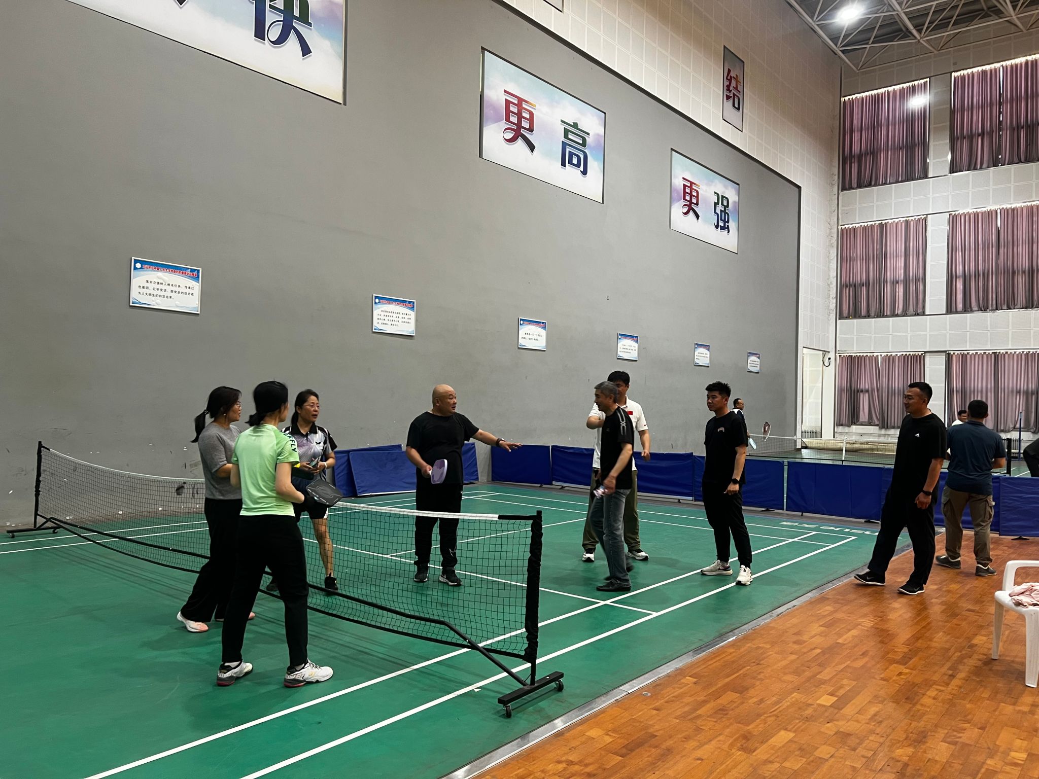 为积极响应全民健身国家战略,丰富教职工文体生活,5月15日,由校工会(妇委会)与体育美育教学部联合主办的教职工匹克球培训班在南益馆一楼篮球馆启动。