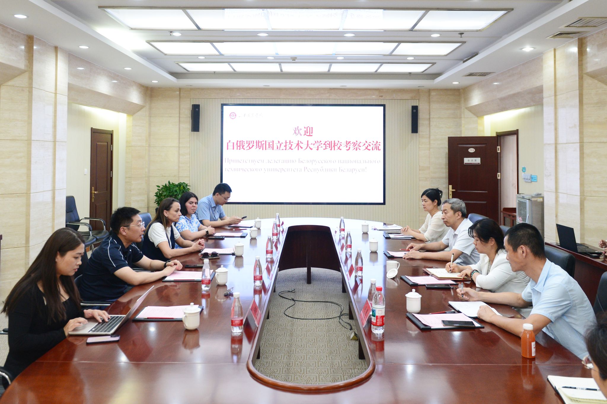 郭鹏对远道而来的代表团致以诚挚欢迎,并简要介绍了学校的历史沿革、专业特色及国际化办学成果。他表示,白俄罗斯国立技术大学是东欧地区顶尖的理工类学府,希望双方以此次访问为契机进一步深化教育合作。阿纳斯塔谢·维塔利耶夫纳表示,希望双方能在专业共建、联合科研、优质资源共享等方面开展深入合作,共同服务两国产业技术升级需求。