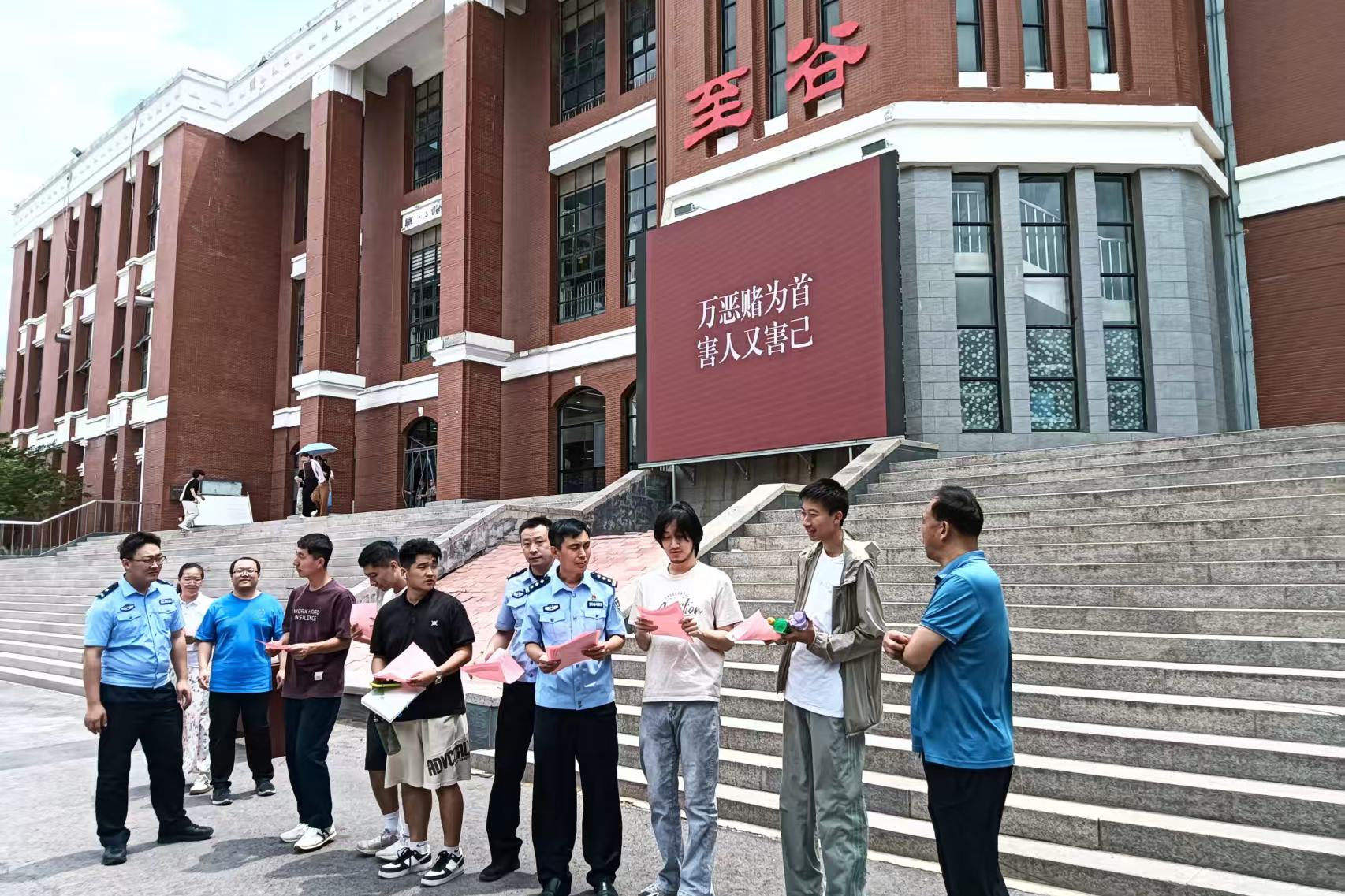 6月16日-22日是2025年山东省打击治理跨境赌博校园宣传周。为提高我校师生识赌、拒赌、反赌的意识和能力,有效预防赌博违法犯罪行为向校园渗透,按照我校《“安全生产月”活动方案》要求,6月16日,学校安全保卫处邀请济南市公安局高新技术产业开发区分局治安大队警官,在至谷餐厅北门口开展了禁赌宣传教育活动。