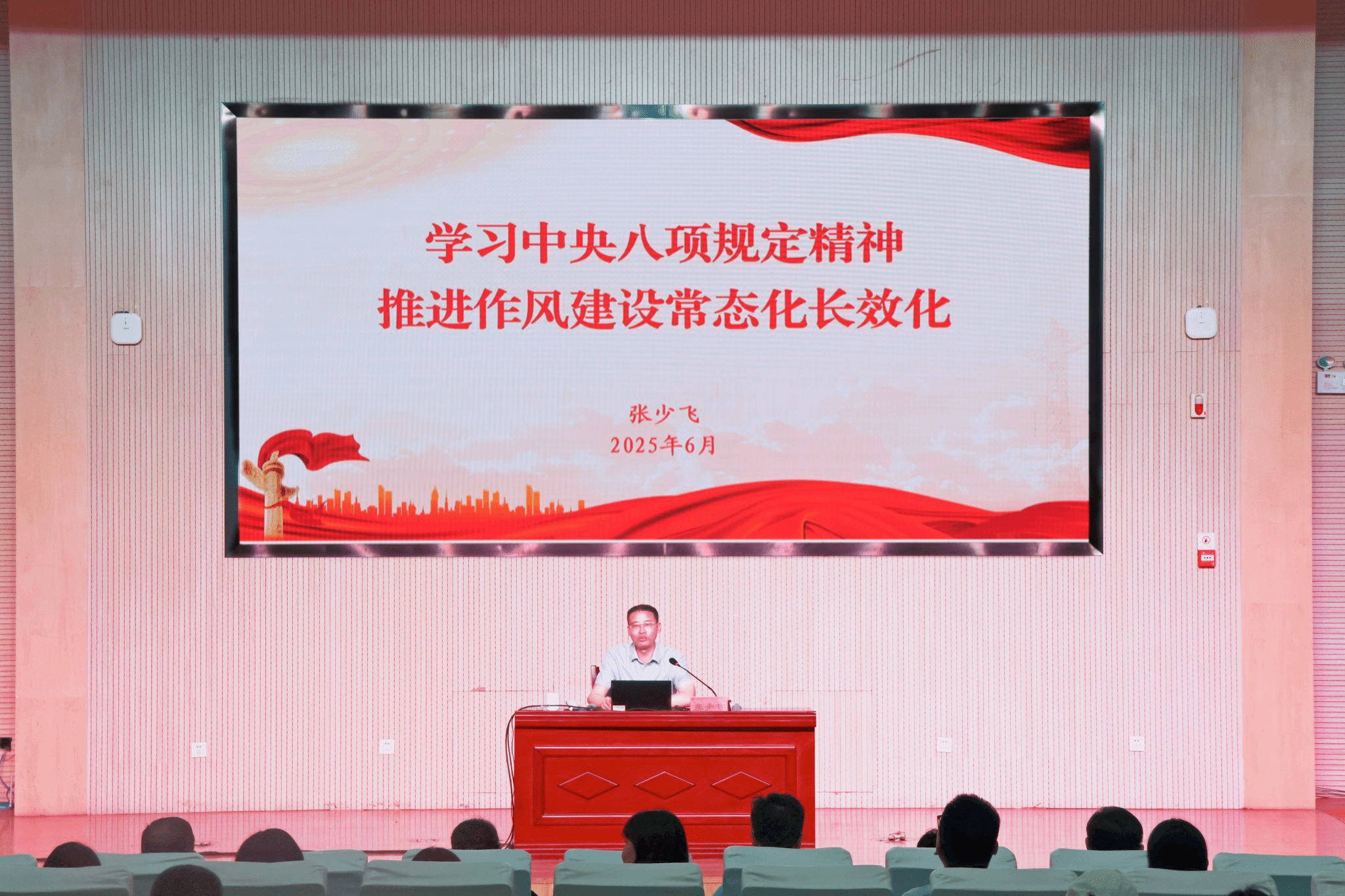 为推进深入贯彻中央八项规定精神学习教育走深走实,筑牢党员干部纪律防线,6月19日,副院长张少飞在东报告厅为党委(学院)办公室、招生就业处、财务基建处、后勤保障处、土木工程学院、体育美育教学部及天佑书院等部门的教师党员70余人讲授专题党课。