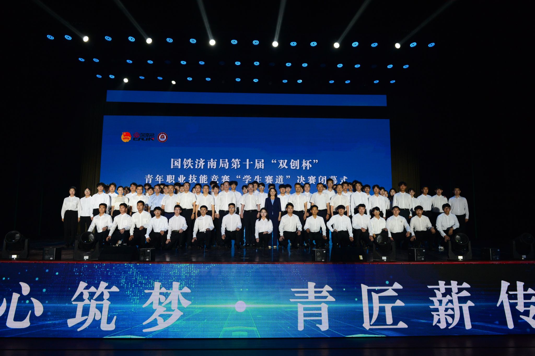 6月26日下午,国铁济南局第十届“双创杯”青年职业技能竞赛“学生赛道”决赛闭幕式在我校大学生活动中心举行。国铁济南局副总经理、总工程师王均川,我校党委书记赵凤文、院长郭培谦,国铁济南局职工培训部主任王万生、团委书记蒋成国等出席仪式,裁判代表、获奖选手及师生代表约1000人共同见证赛事圆满收官。