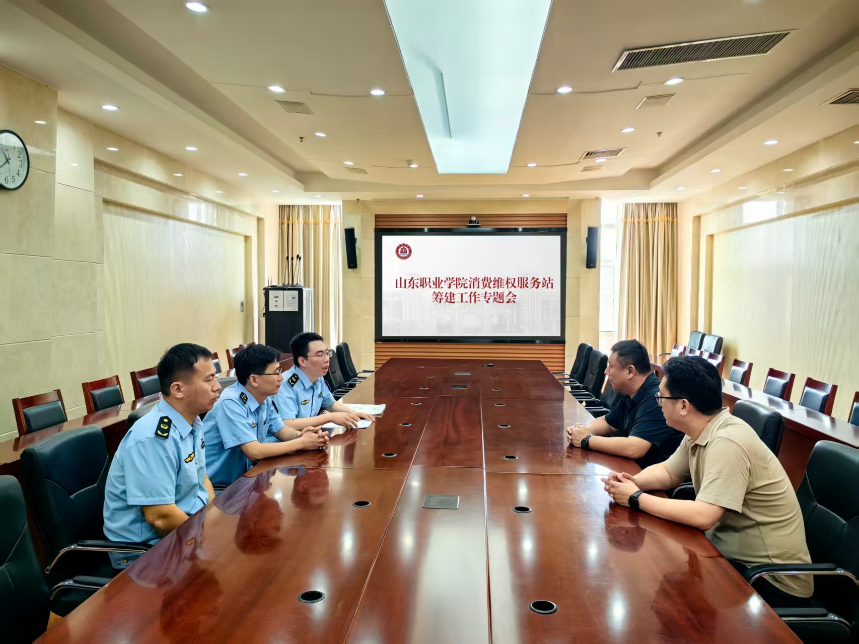8月13日上午,我校在图书行政楼701会议室举行消费维权服务站筹建工作专题会议。济南高新区市场监管部巨野河市场监管所副所长邱剑、济南高新区市场监管部交易秩序管理办公室赵赢鑫出席会议。会议由后勤保障处处长魏鹏主持。