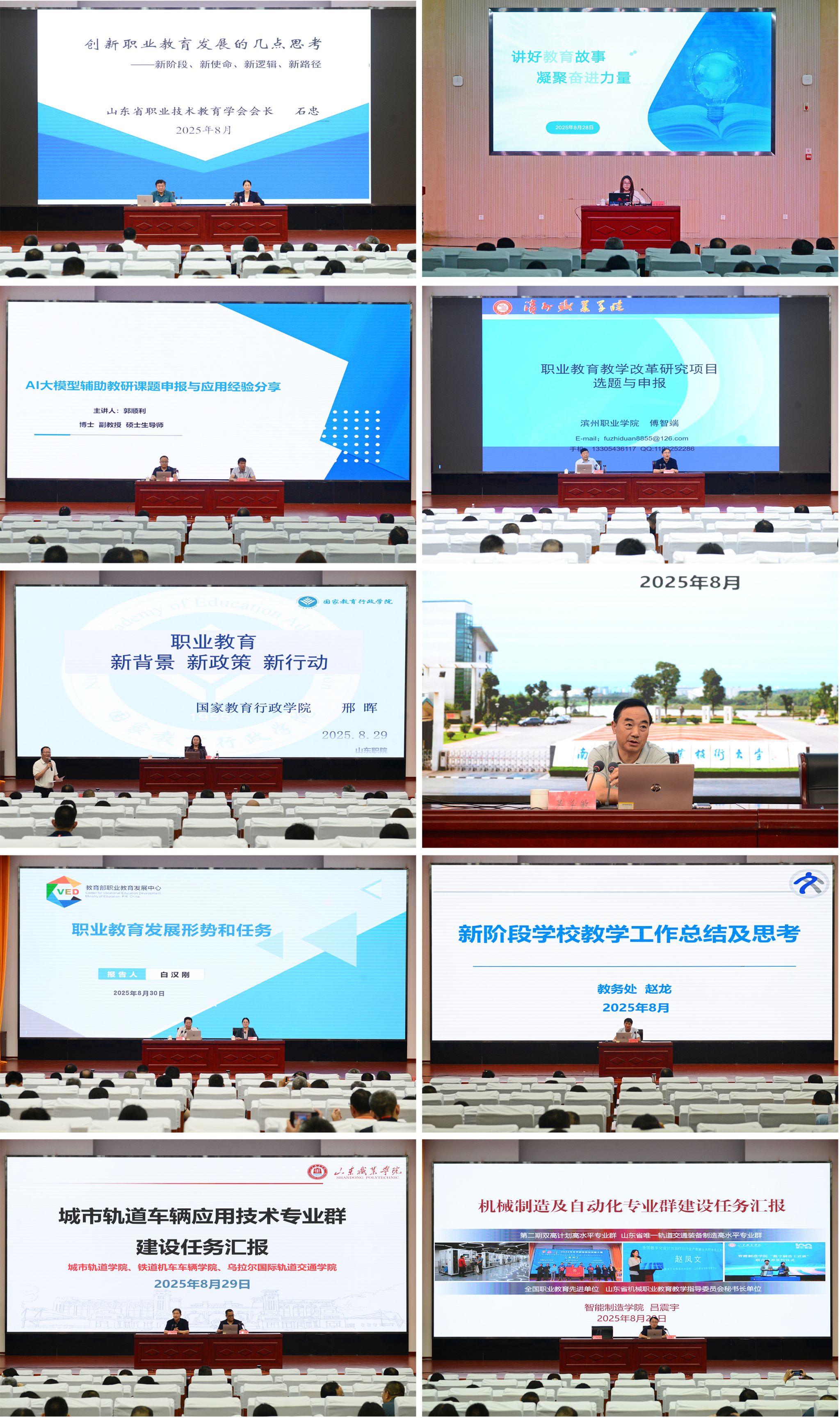 山东省职业技术教育学会会长石忠以《创新职业教育发展的几点思考》为题,系统阐释了职业教育在新阶段的使命定位与创新路径。国家教育行政学院学术委员会原主任邢晖深入解读国家职业教育最新政策,梳理高质量发展背景下的行动方向。南京工业职业技术大学原党委书记吴学敏详细分析了职业教育发展的机遇与挑战和人才培养体系构建的具体路径。教育部职业教育发展中心战略发展处处长白汉刚聚焦当前职业教育的形势与核心任务,分析解读了未来改革发展的重点。山东省教育厅beplay(中国)中心主任诸葛佳琳系统讲解了公文写作技巧与教育宣传能力提升策略。曲阜师范大学教授郭顺利介绍了如何借助大模型技术助力教改课题申报,为科研创新提供新思路。滨州职业学院原教务处处长傅智端结合多年评审经验,全面梳理了教改课题的撰写规范与申报逻辑。此外,我校骨干教师分享了“101工程”及专业群建设方面的实践经验,展现了学校在关键领域的推进成果。