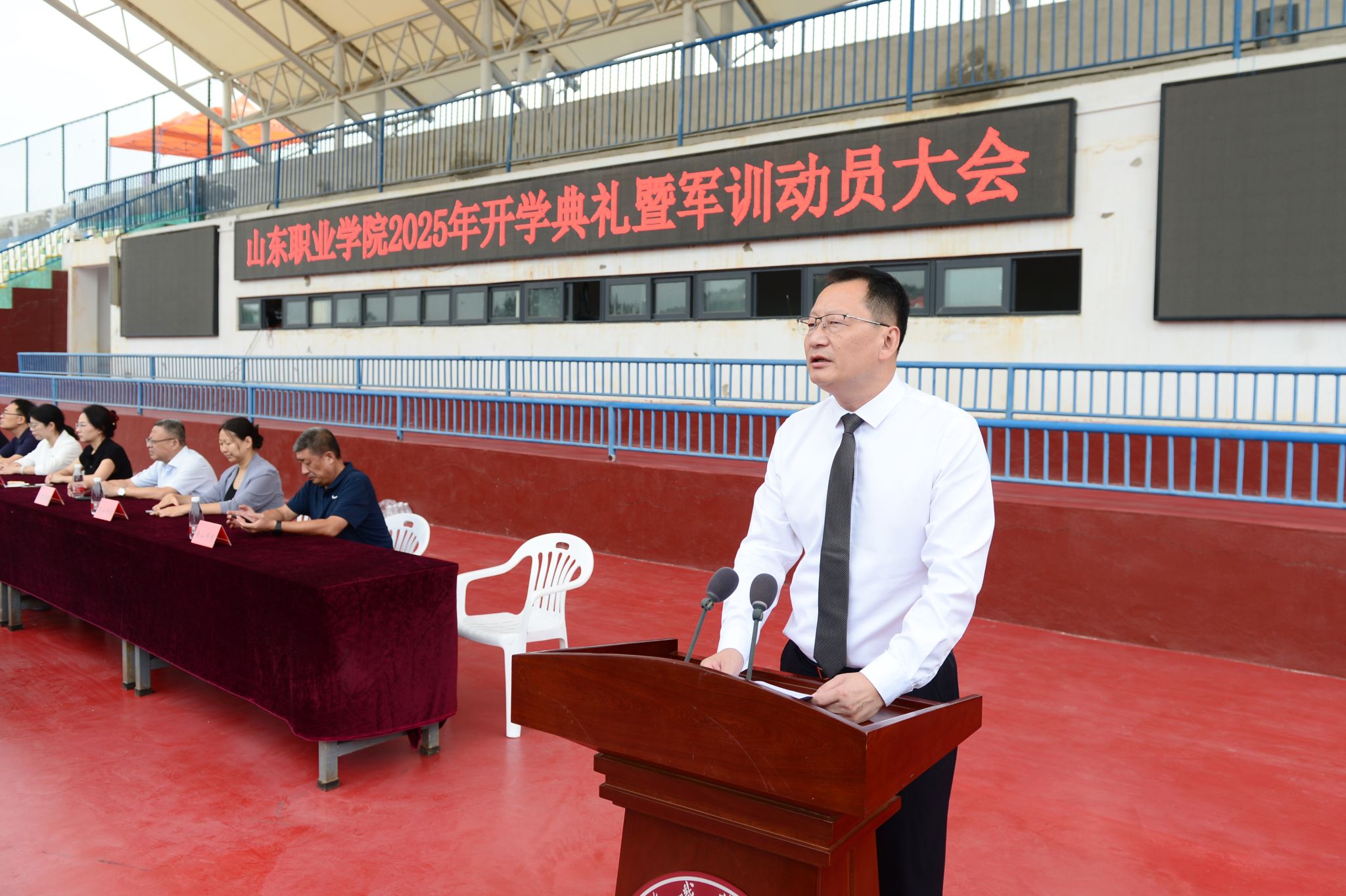 秋高气爽,丹桂飘香。9月11日上午,我校2025级新生开学典礼暨军训动员大会在运动场举行。党委书记赵凤文,院长郭培谦,领导班子其他成员出席大会。大会由党委副书记郭鹏主持。