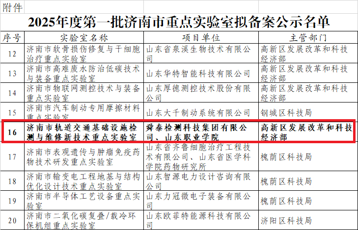 近日,济南市科学技术局公示2025年度市重点实验室拟备案名单,我校乌拉尔国际轨道交通学院与舜泰检测科技集团有限公司联合申报的“济南市轨道交通基础设施检测与维修新技术重点实验室”成功入选,标志着学校在服务区域产业创新、提升学科科研实力上迈出了关键一步。