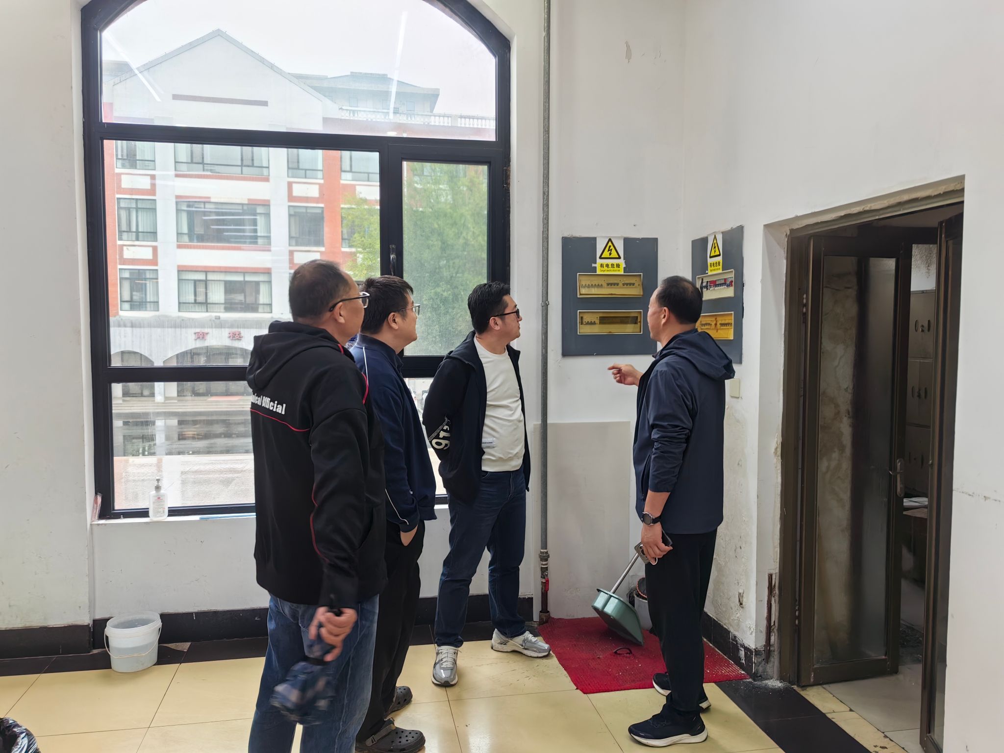 本次排查聚焦校园周边山体滑坡风险、建筑物漏雨隐患及用电安全等风险领域。针对山体滑坡风险,检查组重点巡查了校园周边山体坡面的稳定性,全面检测了挡土墙、排水沟等防护设施。针对建筑漏雨隐患,重点检测了屋顶防水与排水系统,对前期降雨暴露的渗漏点建立整改台账。在用电安全方面,检查组深入配电室、餐厅及学生宿舍,确保电路线路、漏电保护装置及应急供电设备运行正常,严防潮湿环境引发短路事故。