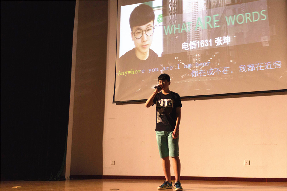 在现场热烈的掌声中,在亲友团的热情呼唤中比赛正式开始。一首首悦耳动人的歌曲,一次次深情娴熟的英文演绎,仿佛带来大家穿越了时空去领略那美轮美奂的异域风情:其中来自铁道机车与机电装备系的4号选手李向成和7号选手吴静杰选手表现出众,他们一个是激情欢快的说唱饶舌,一个是深情脉脉的舒缓演绎,给在场的评委老师和观众们留下了深刻的印象。此外,8号张泽悦选手的浑厚低音与宽广的音域也让大家耳目一新。