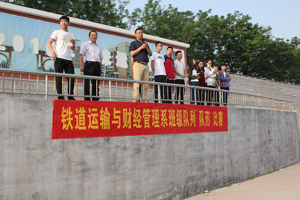 5月10日,铁道运输与财经管理系举办队列队形比赛,系党总支书记吕鹏、学工办主任栾金志参加活动。