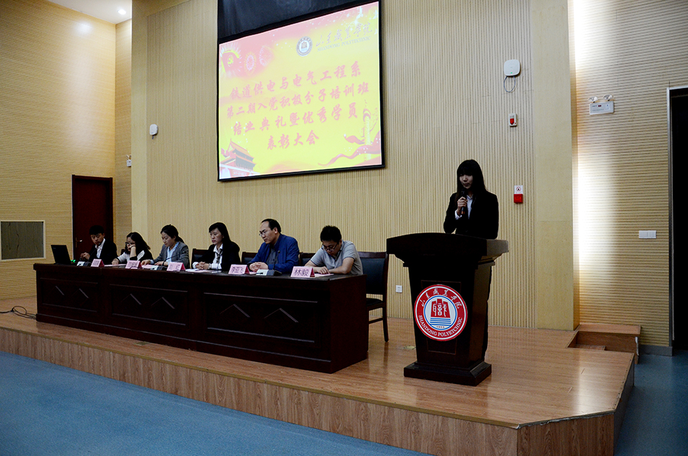 5月8日,铁道供电与电气工程系隆重举行第二期入党积极分子培训班结业典礼暨优秀学员表彰大会。系党总支书记刘红,学生党支部书记李亚飞,团总支书记范媛媛、辅导员冯国英、林毅出席结业典礼。
