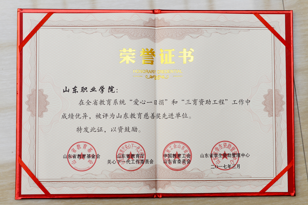 日前,山东省教育基金会对在“爱心一日捐”及“三育资助工程”项目工作中取得显著成效、绩效突出的全省103个单位进行了表彰,我院被评为山东教育慈善奖先进单位。
