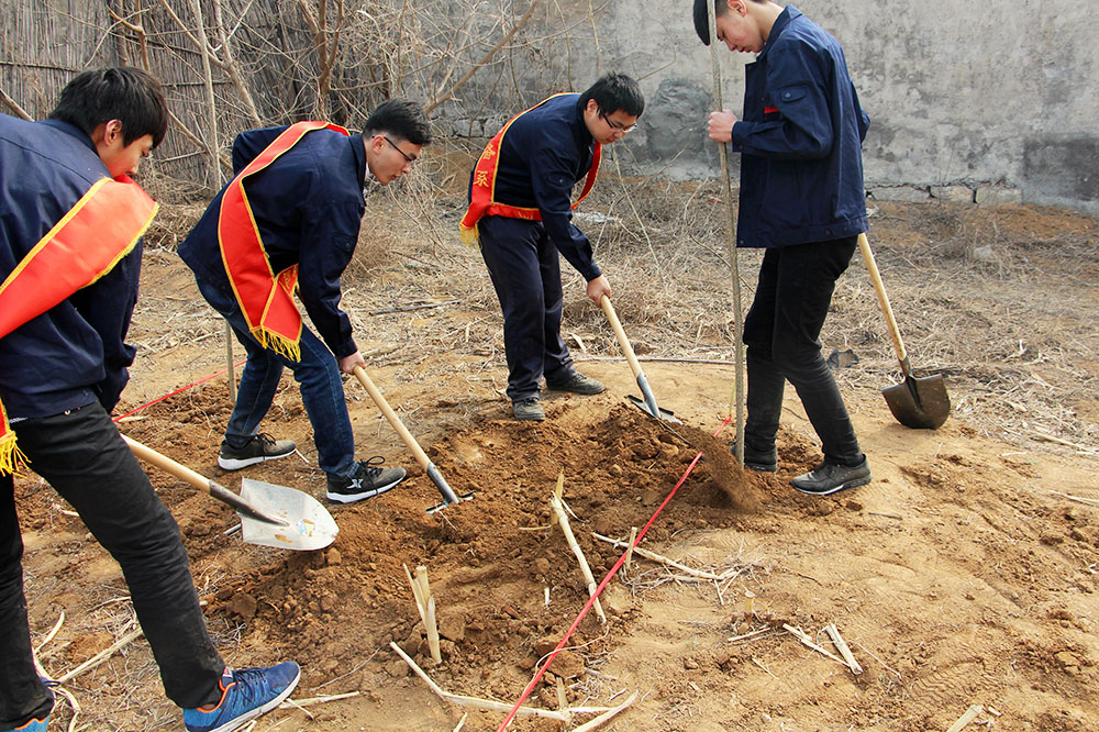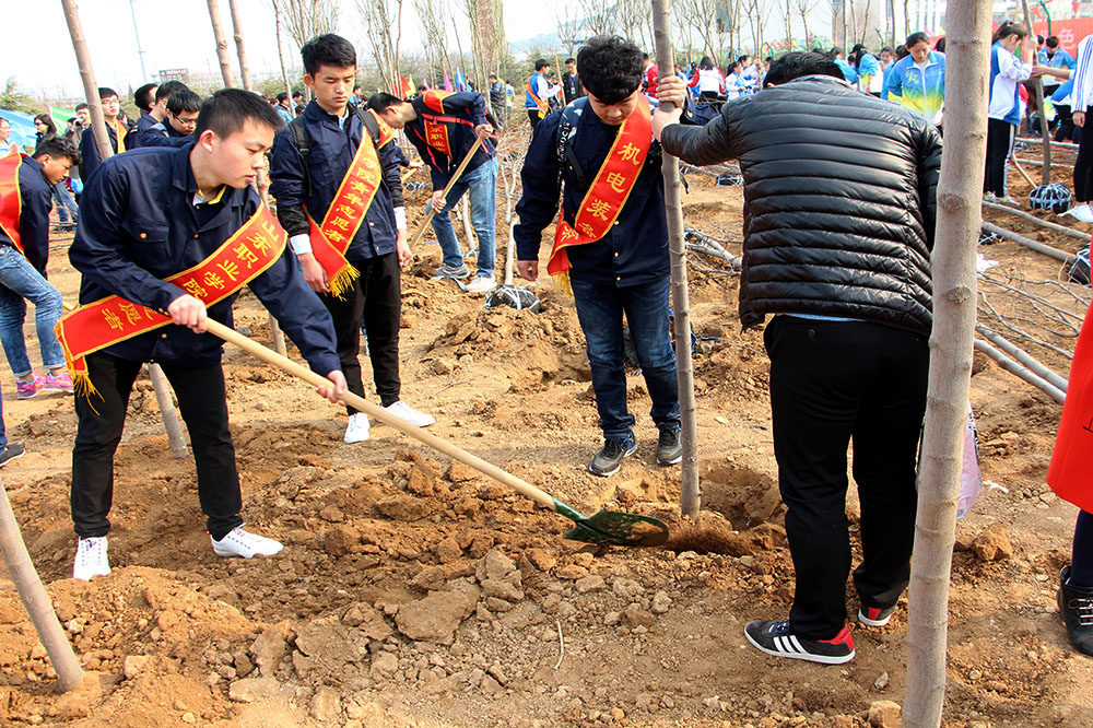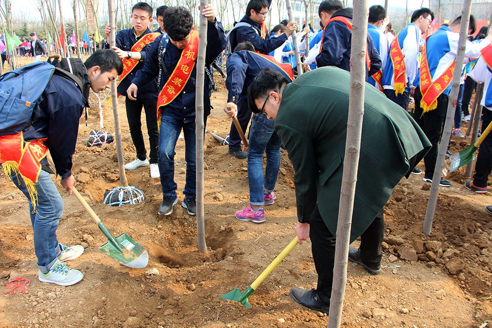 阳春三月,万木争春。在“植树节”到来之际,铁道机车与机电装备系开展了为期两天的义务植树活动。植树现场,志愿者们齐心合力,配合默契,繁忙有序。他们有的扛苗散苗,有的扶树填土,有的盖土浇水,干的热火朝天。大家挥洒着汗水,享受着劳动带来的快乐。经过志愿者们两天的辛勤劳作,一棵棵树苗“安家落户”。