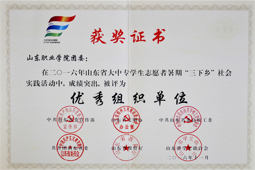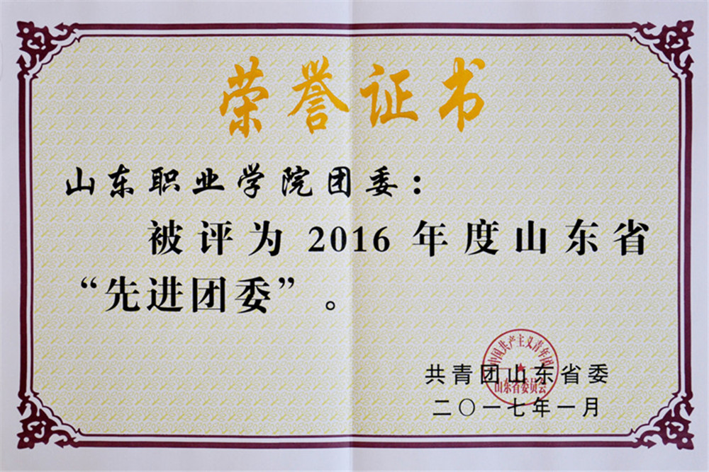 近日,共青团山东省委下发通知,对2016年度全省共青团工作先进集体和个人进行表彰,我院团委荣获“2016年度山东省先进团委”称号,至此我院已连续三年获此殊荣。