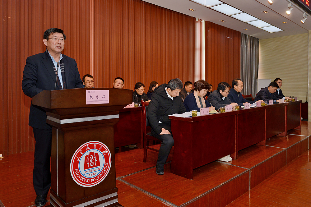 1月14日,我院召开第二届教职工代表大会第二次会议,听取院长秦河作的关于学院“十三五”发展规划编制情况的说明,听取副院长徐冬作的第二届教职工代表大会第一次会议提案审查处理工作报告,审议并表决通过了《Beplay体育官方网站“十三五”发展规划》决议(草案)和《Beplay体育官方网站系部教职工大会实施办法》决议(草案)。学院党委书记王荣昌在会上讲话,工会主席王功喜主持大会。