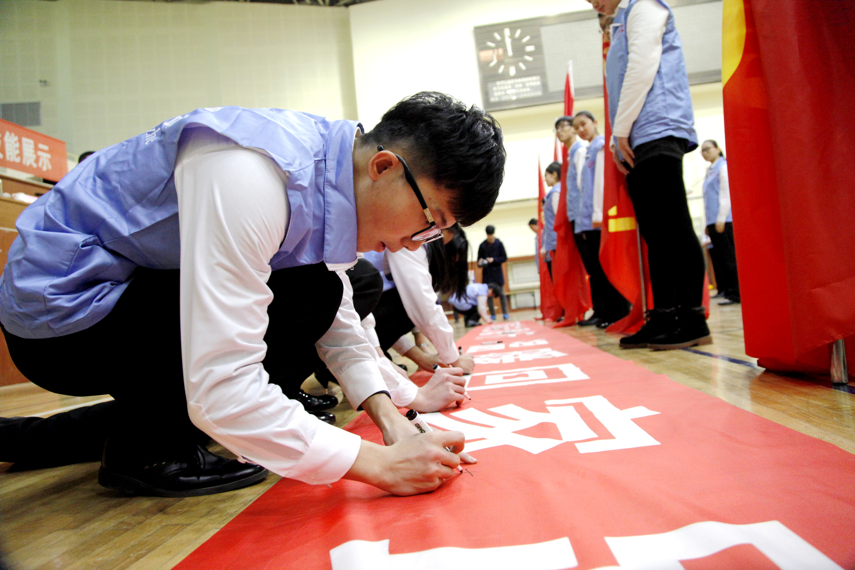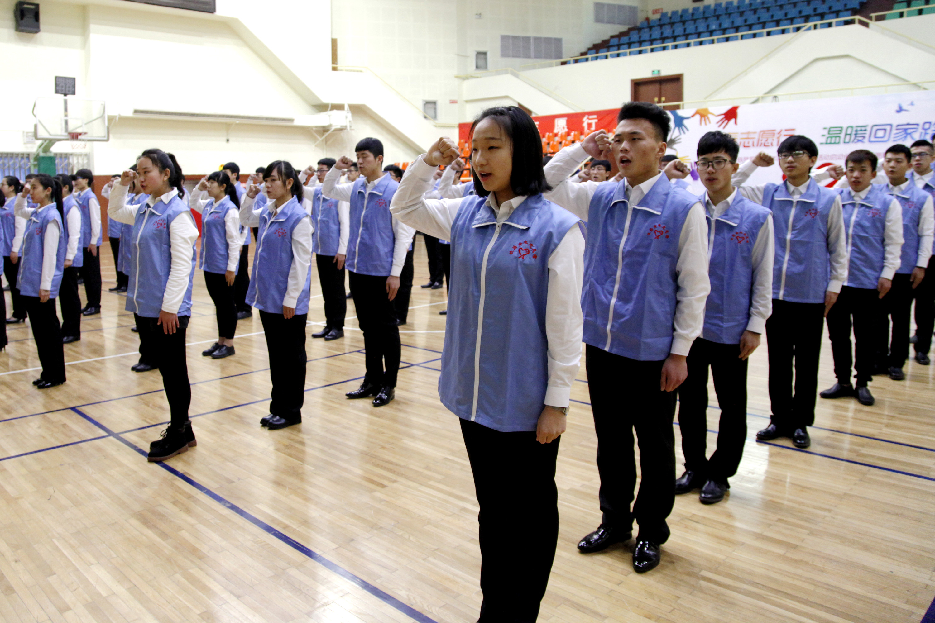 1月13日上午,济南铁路局2017年春运志愿服务活动启动仪式暨志愿服务技能展示在铁路体育馆举行。山东省志愿者行动指导中心主任刘北雪、济南铁路局团委副书记胡海、济南铁路局客运处副处长宗辉、Beplay体育官方网站团委书记王伟、Beplay体育官方网站铁道供电与电气工程系党总支书记刘红出席活动。Beplay体育官方网站“红蓝青”志愿者协会的同学们以手语操表演《感恩的心》和英语服务情景对话展示将专业、温情的志愿服务表现得淋漓尽致。参与志愿服务的同学们在第十一届中国优秀青年志愿者济南铁路局王孜慧同志的倡议下签名并郑重宣誓:尽己所能,不计报酬,帮助他人,服务社会,践行志愿精神,传播先进文化,为建设团结互助、平等友爱、共同进步的美好社会贡献力量。