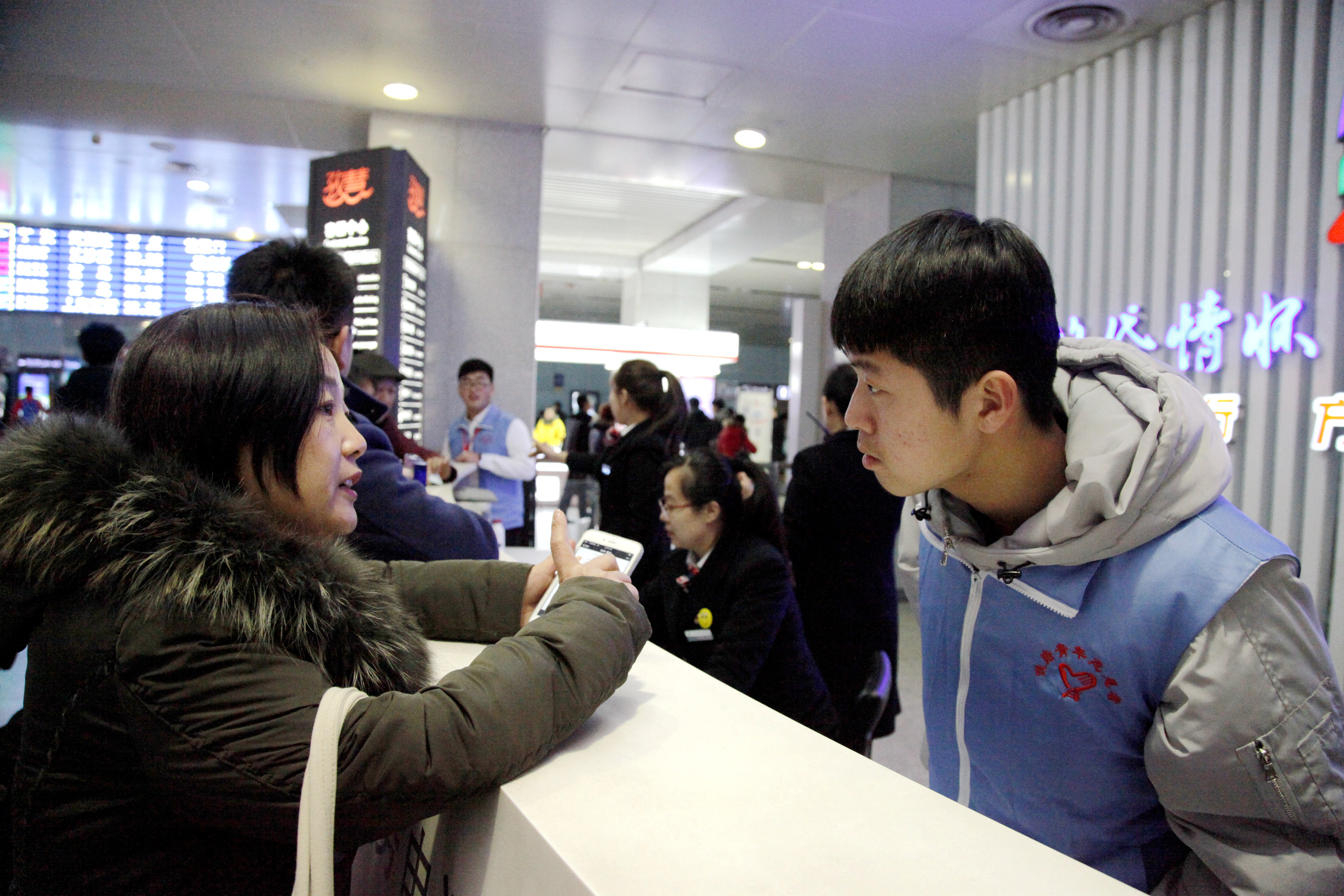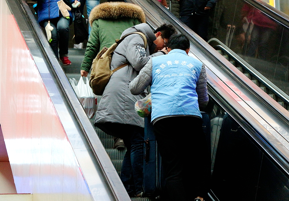 2017年1月13日,2017年铁路春运拉开大幕,大批旅客踏上回家之路,除了忙碌的铁路部门工作人员外,还有一群大学生志愿者活跃在济南铁路局的各个服务岗位上。他们彬彬有礼地为每位前来咨询的旅客答疑解惑,或热情地帮助一些不方便的旅客提拿行李,这些被旅客们称为“可爱蓝精灵”的大学生就是Beplay体育官方网站“红蓝青”志愿者协会的春运志愿者们。在售票厅、进站口、候车室,都有他们忙碌的身影,他们用实际行动诠释奉献与担当,弘扬正能量,温暖回家路。