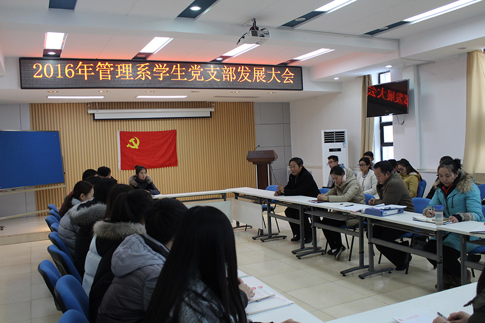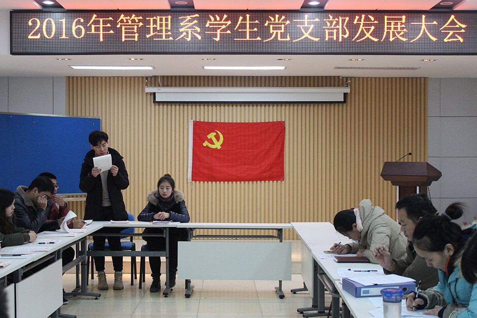 12月29日,铁道运输与财经管理系学生党支部召开党员发展大会,系党总支书记吕立宁出席会议并讲话,系学生党支部书记栾金志主持会议。