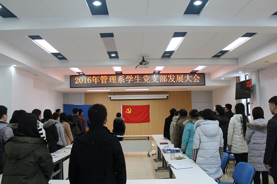 大会在嘹亮的《国歌》中开始。首先,14名入党发展对象分别向支部大会汇报了个人的学习、生活、思想情况,表明了加入党组织的强烈愿望和决心。随后,入党介绍人对发展对象的表现情况向大会发表介绍意见。会上,与会党员还对发展对象有关党的基本知识和理论掌握情况进行了随机提问。经支部党员投票表决,一致同意接收14名发展对象为中共预备党员。14名入党发展对象在会上分别作了表态发言,表达了坚定不移跟党走,为党旗争光添彩的决心。吕书记在讲话中希望新党员要牢记入党宗旨,在思想上、行动上全面入党,积极工作,充分发挥党员先锋模范作用。会议在雄壮的《国际歌》中圆满结束。