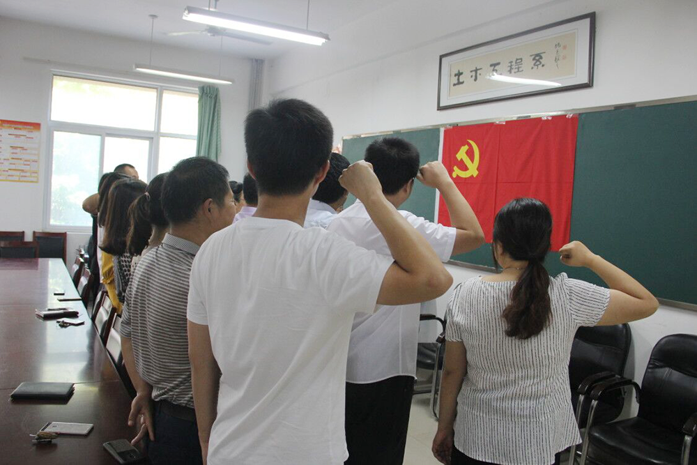 面向鲜红的党旗,全体党员高举右手,声音铿锵,容色坚定,庄严地重温了入党誓词:“我志愿加入中国共产党,拥护党的纲领,遵守党的章程,履行党员义务,执行党的决定,严守党的纪律……”句句千钧,神情庄重地许下对党和人民的承诺。