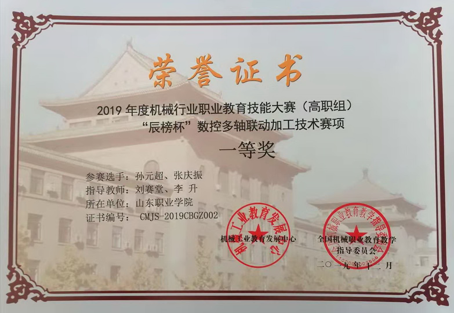 12月5日至8日,2019年度机械行业职业教育技能大赛(高职组)“辰榜杯”数控多轴联动加工技术赛项举行。我院机械制造与自动化专业2018级学生孙元超、张庆振组成的参赛队,在刘赛堂、李升两位老师的指导下,与来自全国26支代表队的52名选手同场竞技,最终斩获一等奖佳绩。