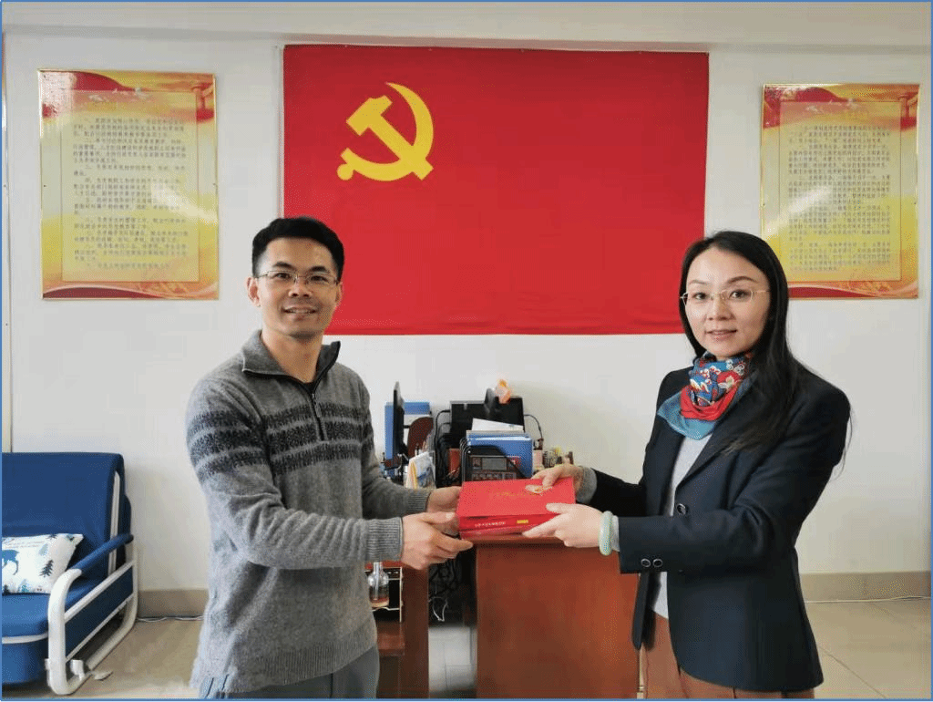 王少妮、殷岩峰、王倩三位同志均在不同年份的12月入党,党支部特地为三位同志过了一个特别的政治生日。在活动中,全体党员面对鲜红的党旗重温了入党誓词。党支部为三位同志发放了政治大礼包——一枚党徽、一本鲜红的党章精读本、一本中华人民共和国宪法精读本、一本政治生日手册和一张政治生日贺卡。王少妮说:“重温入党誓词,过政治生日是党组织对党员的又一次鞭策,我们要牢记党章对党员的要求,遵守宪法和法律,以满腔的热情投入到我校的综合改革和内涵发展事业中,为我们国家‘两个一百年’奋斗目标的实现尽到一个党员十分的力量。”