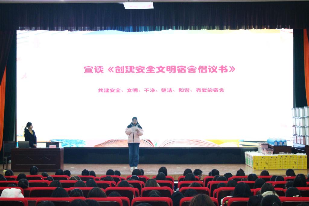 活动中,易安书院辅导员姬粉粉结合辅导员深入宿舍过程中发现的突出问题与大家一起展开讨论,引导同学们要注意个人仪表和宿舍卫生整洁,理性面对宿舍冲突、拒绝冷暴力,同时要养成规律作息,学会互相理解和宽以待人。接着,易安书院文明宿舍学生代表宣读了《创建安全文明宿舍倡议书》,倡议同学们从自我做起,从身边小事做起,齐心协力美化生活空间,展现新时代大学生精神文明风貌,共同创建安全文明宿舍,建设和谐校园。