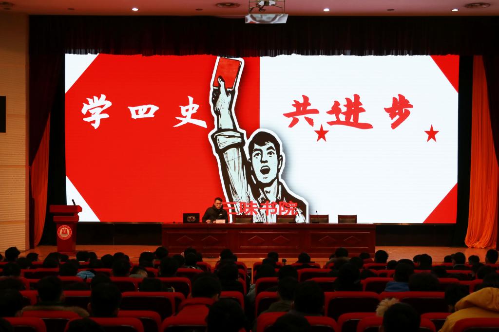12月30日,书院党支部组织委员王成琳讲授“学四史 共进步”党课。王成琳从新时代为什么要学“四史”、新时代“四史”学什么、新时代“四史”怎么学这几个方面讲解,并用生动的语言和精彩的故事讲述了党成立初期的历史和先进人物事迹,大家纷纷围绕四史展开心得交流和集中学习,感悟良多、收获满满。