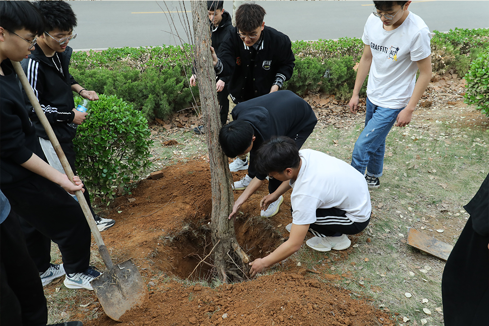 回到学校后,大家把从基地带回来的5棵柽柳栽种在7号宿舍楼下,以实际行动践行习近平总书记“绿水青山就是金山银山”的理念。