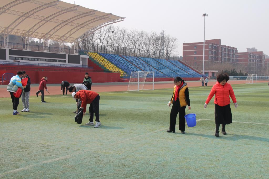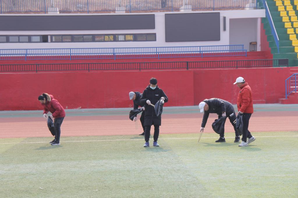 2月24日中午,体育教学部党支部组织全体党员、入党积极分子和部分学生干部开展了清理操场垃圾主题党日活动,将入党初心落实在行动上。