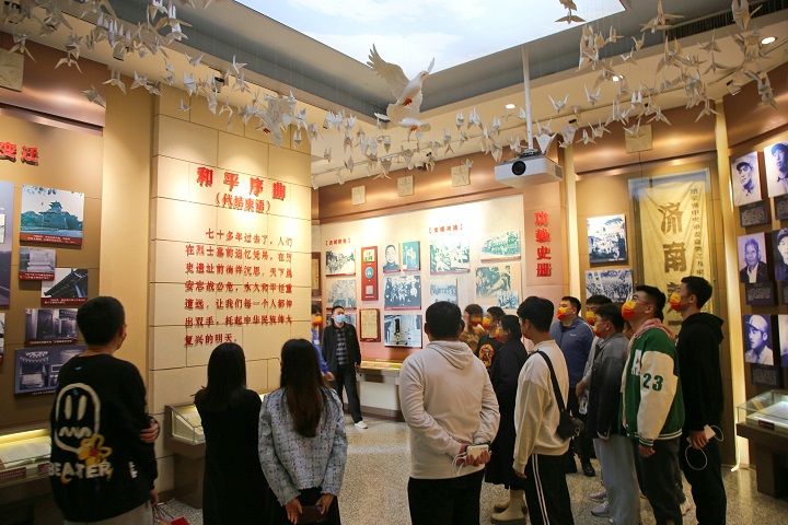 下午,师生们参观了济南战役突破口—解放阁。纪念馆内陈列的各种照片、文献资料等再现了当年中国人民解放军解放济南的情形。解放军战士万众一心、团结奋战、同仇敌忾、舍生忘死的精神,深深触动着在场的每一个人。
