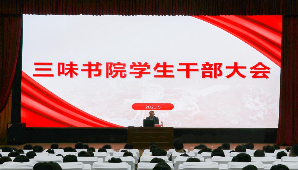 为进一步提高新学期学生干部的政治素养和工作能力,激发学生干部的工作积极性,5月6日,三味书院在图书行政楼西报告厅召开2023年学生干部大会。会议由三味书院院长吕立宁主持,书院学生会、团总支、自律会、各书社班委250余人参加。