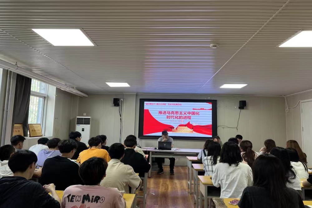 汤华东以《推进马克思主义中国化时代化的进程》为题,从“推进马克思主义中国化时代化的过程”“马克思主义中国化时代化产生的背景”“马克思主义中国化时代化的方式”“马克思主义中国化时代化的成果”等四个方面,带领同学们了解了马克思主义在中国的发展过程。
