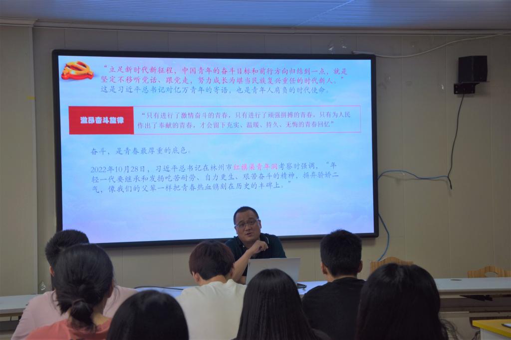 庞继伟以《总书记的青年观》为题,带领同学们学习领悟习近平总书记的“青年观”,向同学们讲述了习近平总书记高度重视青年和青年工作的事例,重点解读了总书记对亿万青年的寄语,并以我校优秀毕业生为例,引领同学们深刻感悟总书记对青年成长和青年工作的关心。