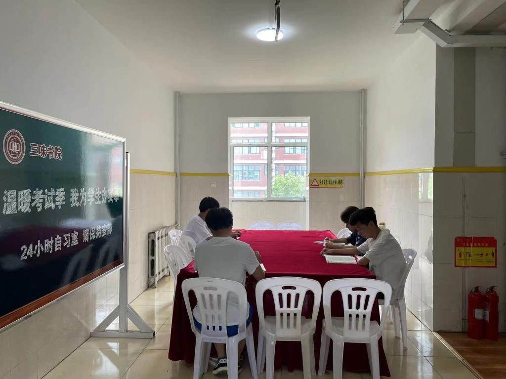 做“暖心人”,开设24小时自习室。为了让同学们有充分的时间复习、备考,在期末考试期间三味书院在1号公寓楼4楼大厅、5楼大厅、1412宿舍,2号公寓楼2203、2207、2209活动室特设置24小时自习室,为广大学生提供复习便利。
