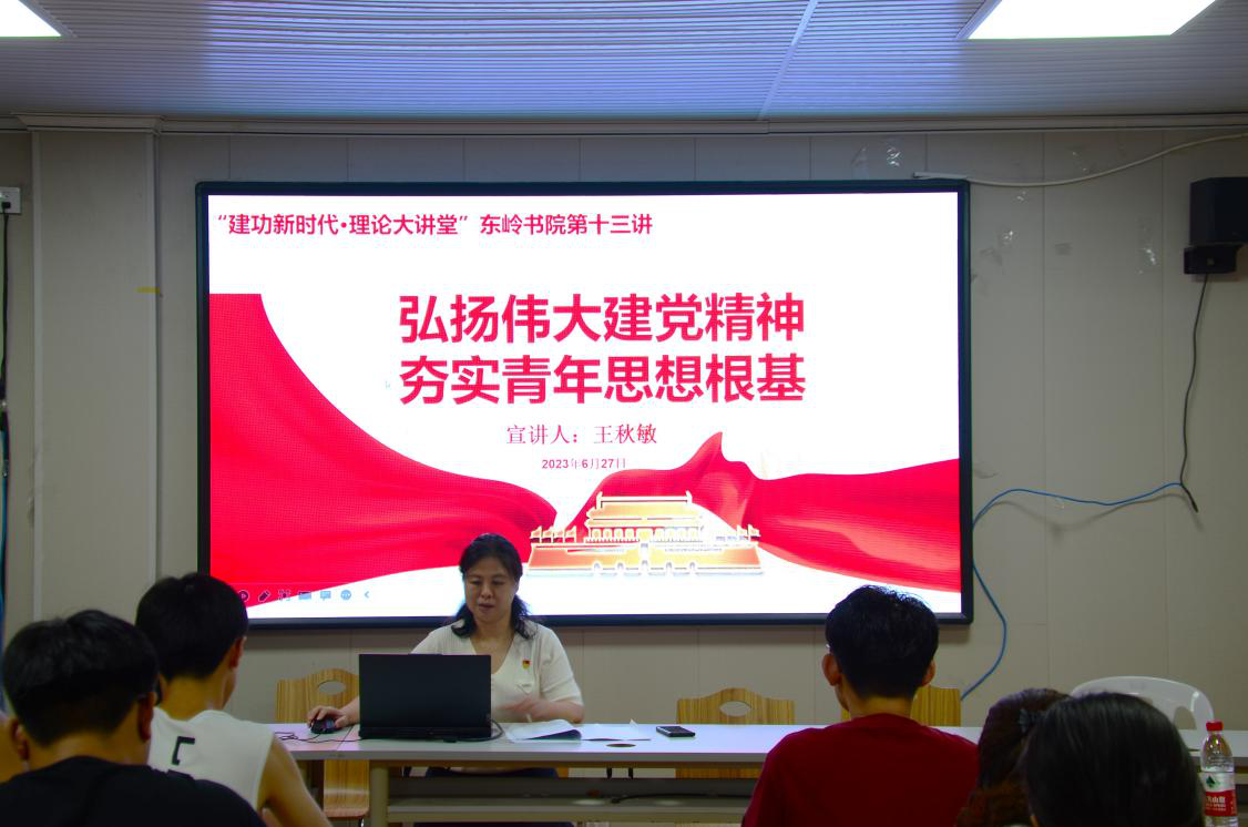 6月27日,东岭书院“建功新时代·理论大讲堂”专题宣讲活动第十三讲在书院右苑一楼党团活动室开讲,教务处处长王秋敏应邀进行宣讲,东岭书院师生代表参加。